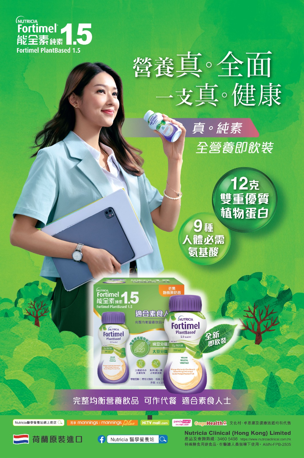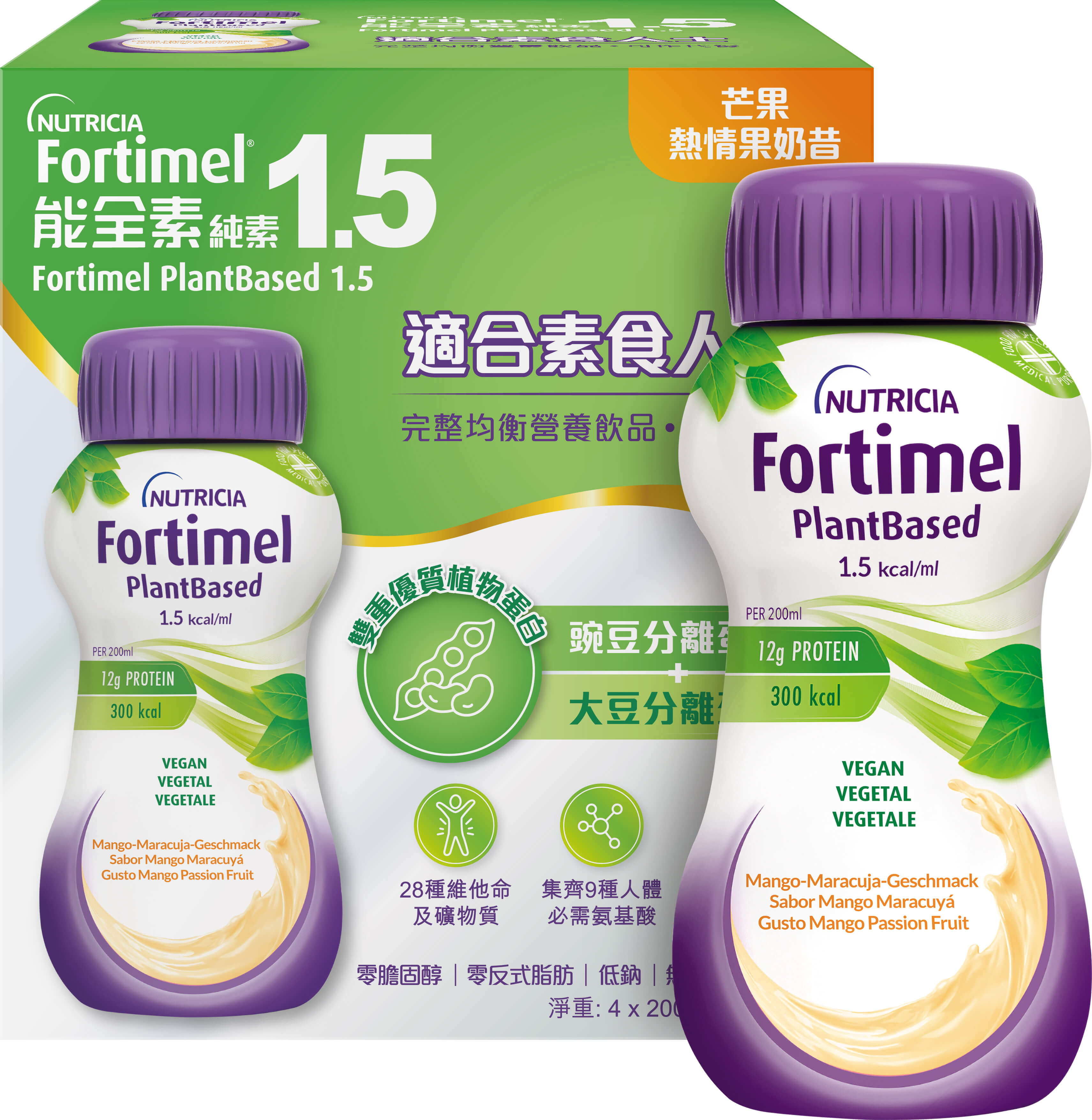 Fortimel PlantBased 1.5能全素純素1.5 由雙重優質植物蛋白(來自豌豆和大豆)製成,集齊九種人體必需氨基酸。配方採用全素成分,均來自非動物來源,並符合聯合國糧食及農業組織(FAO)2013年推薦的成人氨基酸參考模式,PDCAAS為11-3,表示其質量極高並完全滿足人體必需氨基酸需求及被人體消化吸收。