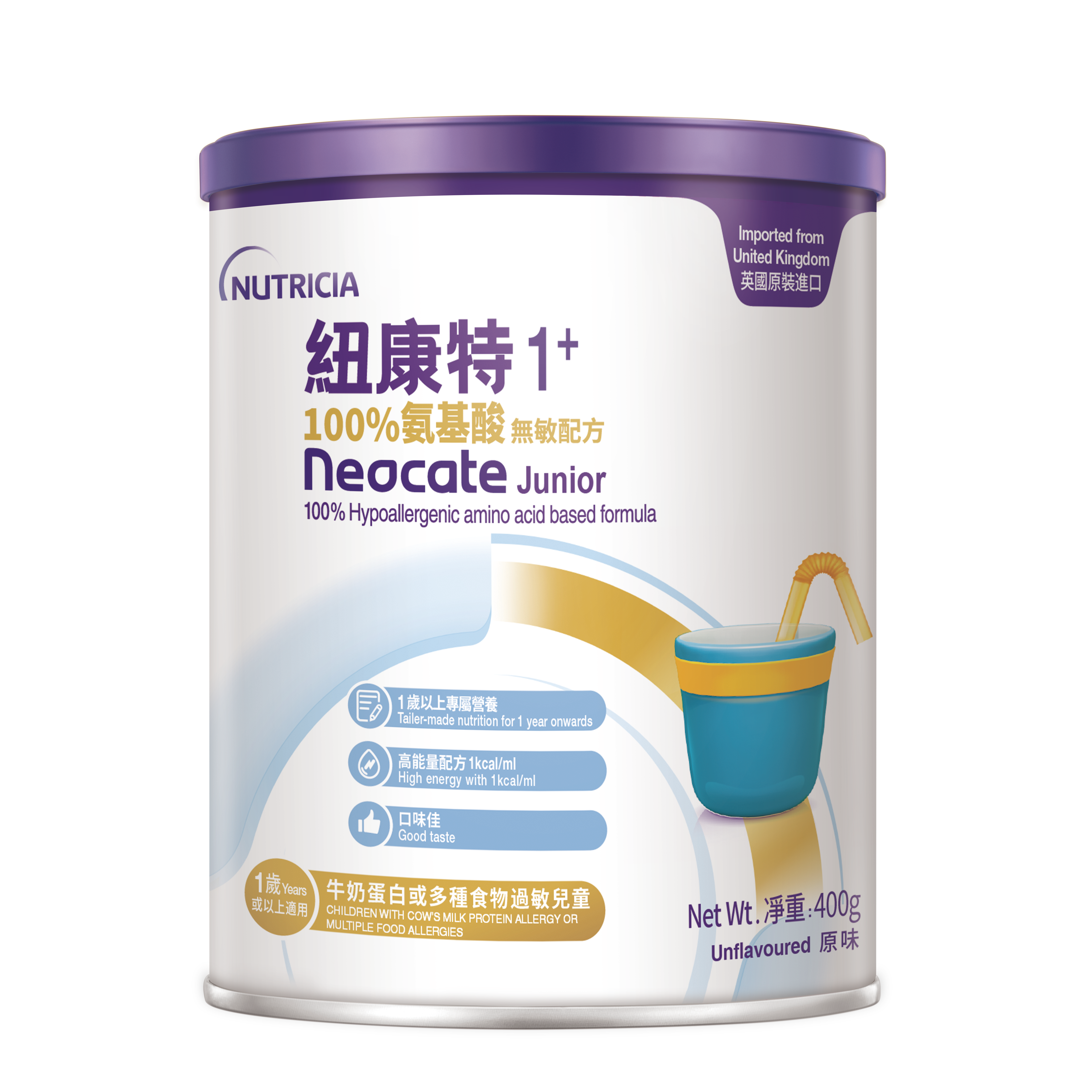 紐康特1+ Neocate Junior 無敏配方是供全面營養,適用於1歲以上的幼兒。提供幼兒生長發育所需的蛋白質,並滿足能量需求