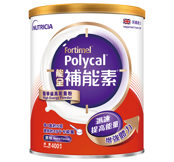 醫學級高能量粉啟發自領先全球的 Nutricia 醫學營養專家120年來對營養學的研究成果。Fortimel Polycal 能全補能素®迅速被人體吸收,適合熱量攝取不足或需額外補充熱量人士,迅速提升身體能量水平,增強體力。